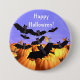 A pin with my fun original image of bats flying out of pumpkins with customizable text "Happy Halloween!"