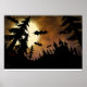 Halloween Bats, Castle and Moon Poster