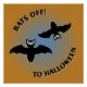 Cute little bats wishing a happy 'bats off to Halloween' in this festive digital illustration.