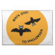 Cute little bats wishing a happy 'bats off to Halloween' in this festive digital illustration.