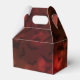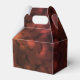 Halloween themed favor box featuring dark orange and red bokeh background and black bats pattern.