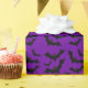 Halloween bats pattern wrapping paper with black bats on a purple Halloween night background.Bats have long been associated with Halloween but the connection is by far less ominous than some would suspect. In Halloween's ancient origins people would gather together around giant bonfires to ward off evil spirits. Attracted to the warmth and bright light of these fires were many small flying insects. Natural food for hungry bats. People saw the bats flickering in and out of the firelight during the festivals and they became a feature of Halloween lore. The link between the bat and Halloween became strengthened with the discovery of the Vampire Bat in the 17th century. Tales of bats that drank blood had circulated throughout Europe for centuries before but it wasn't till the Spanish exploration of Central and South America that there was physical proof. It was a natural association for a dark holiday, a creature that lapse the life blood of it's prey in the dark of night. Design made by nadil2 store and printed in full vibrant colors by Zazzle Home.