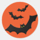 Round sticker shown in orange with Halloween bats. Customize this item or buy as is.