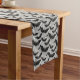Table runner to accent your table decor is shown in a solid color of grey with a festive Halloween bats print. Customize this item or buy as is.
