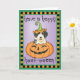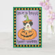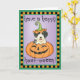 Send Halloween greetings with this card of a cute Bearded Collie puppy in a smiling Jack-o-Lantern. Great for kids of all ages who love Beardies and Halloween. Have a Happy HOWL-oween!