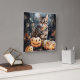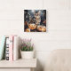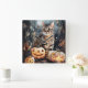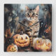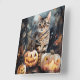 Halloween Bengal Cat With Pumpkins Scary Square Wall Clock