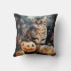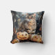 Halloween Bengal Cat With Pumpkins Scary Throw Pillow