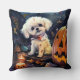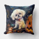Halloween Bichon Frise With Pumpkins Scary Throw Pillow