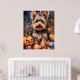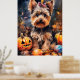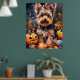 Halloween Biewer Terrier With Pumpkins Scary Poster