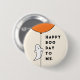 Funny Halloween birthday or Halloween party favor pin featuring cute ghost holding a balloon and creative quote.