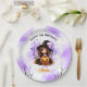 Halloween Birthday Paper Plates for little girls with a cute little witch and pumpkin in purple, black and orange. Easily personalize all the text. Please visit the store for the full line of products that are available :) - Kate Eden Art