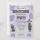 A fun Halloween-themed birthday party invitation featuring a friendly witch, black cat, ghosts, and pumpkins. Perfect for a child’s spooky celebration. Fully editable text so you can personalize name, age, date, time, and party details.