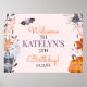 Adorable festive halloween sign featuring ghosts, pumpkins, bats, spiders and fall leaves.