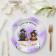Halloween Birthday Paper Plates for twins with a cute little wizard and witch in purple, black and orange. Easily personalize all the text. Please visit the store for the full line of products that are available :) - Kate Eden Art