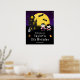 This fun and spooky welcome sign features cute vampires beside a crooked haunted house. In the background is a full moon with bats and a purple night sky with stars. The text combines decorative and serif fonts for a stylish and modern look. This is perfect for a Halloween themed birthday party.