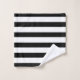 Decorate your bathroom in October with thisHalloween Black And White Script Text Personalized Bath Towel Set. The large bath towel is designed with a customizable black background and the text is "Happy Halloween" in white hand writing script lettering on lower center. Personalized with family's last name in simple white font. The hand towel and wash cloth is black and white horizontal stripes. Click personalize template option and enter name.