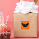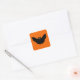 Decal Stickers Set printed with a Halloween Black Bat And Pumpkin Orange Background Color artwork design image by TheFabricSeal at Zazzle.com is a cute and simple lone black bat illustration art drawing silhouette style with peekaboo peering khaki green and pumpkin orange eyes looking out for friends and prey alike and a cool dark Halloween night of adventure, goblins, ghouls, and trick or treat sweets.