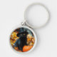 Keychain featuring an adorable black cat wearing a witch’s hat! This little cutie poses with a pumpkin. Autumn leaves carpet the forest floor. A purr-fect gift for Halloween celebrations!
