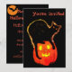 Halloween Black Cat atop Glowing Orange Pumpkin Invitation