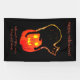 Halloween black cat with glow atop orange glowing carved pumpkin on black background banner with text. Fill in your information. Place on your front door or inside for Halloween party.