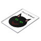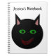 This awesome customizable notebook features a black cat with pointed ears, bright green eyes and a sly red grin. This creepy kitty is perfect for Halloween or for cat lovers.There is customizable text at the top of the notebook allowing you to personalize it for yourself or give it as a gift.