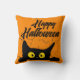 Halloween Black Cat Distressed Texture Orange Throw Pillow
