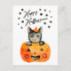 Halloween Black Cat in Jack O' Lantern Holiday Postcard