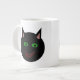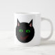 This awesome mug features a black cat with pointed ears, bright green eyes and a sly red grin. This creepy kitty is perfect for Halloween or for cat lovers.