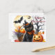 This black cat postcard is perfect for sending Halloween greetings to all your family, friends, and cat lovers. The Halloween image features a classic digital watercolor of a black cat. It is adorned in a witch's hat and situated next to a carved Jack O'Lantern pumpkin. A spooky dead tree, bats, and a full moon fill out the scene. The postcard also includes a greeting that you can personalize to say “Happy Halloween” in your own way.