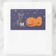 Halloween Black Cat Pumpkins Lantern Purple Rectangular Sticker