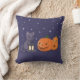 Halloween Black Cat Pumpkins Lantern Purple Throw Pillow
