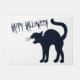 NewParkLane - Halloween door mat, with a black and white silhouette illustration of a black hissing cat.