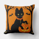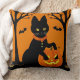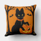 Halloween Black Cat Surrounded by Jack-o'-Lanterns Throw Pillow
