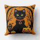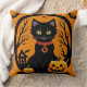 Halloween Black Cat Surrounded by Jack-o'-Lanterns Throw Pillow
