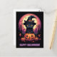 Halloween Black CAT with Pumpkin and Witch HAT Postcard