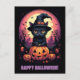 The postcard featuring this Halloween design is a delightful way to send spooky greetings to your friends and loved ones. The charming illustration showcases a cute black cat in a witch's hat alongside a friendly pumpkin, all set against a bold and magical backdrop. With its fairytale vibes and eerie moonlit night, this postcard captures the enchantment of Halloween in a compact and memorable format. It's the perfect way to spread the Halloween spirit and send warm wishes to those you care about.