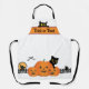Give your kitchen some Halloween spirit with these cute black cats and orange pumpkin apron design. Orange and purple accents make this the perrrrrrfect kitchen or trick or treat accessory! The 'Trick or Treat' verbiage can be changed to add a name or whatever you would like to personalize this fun Halloween apron.