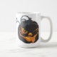 Scarey looking black pumpkin turned into jack O'Lantern- text is Boo! which is customizable to what ever saying you like- Trick or Treat- Perfect for drinking your hot cocoa on a cold Halloween night
