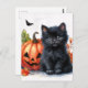 Halloween Black Kitten with Jack-o-lantern Postcard
