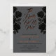 This design feathers a Halloween wedding theme "TILL DEATH DO US PART" with stunning black roses on a charcoal grey background and elegant rose gold real foil script, perfect for couples planning a spooky, elegant gothic wedding ceremony. This card is easily editable with your personal details.