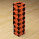 This awesome wine gift box features a spooky black spider with eight hairy legs, yellow eyes with big black pupils and its mouth open showing its fangs. There is orange text that reads “Happy Halloween” and a matching orange background.