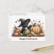 Halloween Black Witch's Kitten W/ Pumpkins Gourds Holiday Postcard