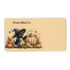 Halloween Black Witch's Kitten W/ Pumpkins Gourds Label