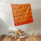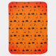 Halloween Blanket with Orange ombre background and black silouettes of pumpkins, moons, stars, candy, cats, bats and witch hats.