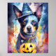 Halloween Blue Heeler With Pumpkins Scary Poster