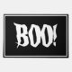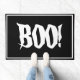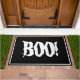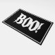 Halloween doormat is shown with a spooky Boo! print on a black background.
