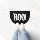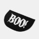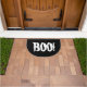 Halloween doormat is shown with a spooky Boo! print on a black background.