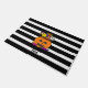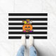 Halloween "Boo" Pumpkin Doormat. This is cute Halloween design in modern black- white stripes.