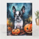 Halloween Boston Terrier With Pumpkins Scary Card