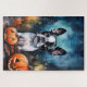 Halloween Boston Terrier With Pumpkins Scary Jigsaw Puzzle